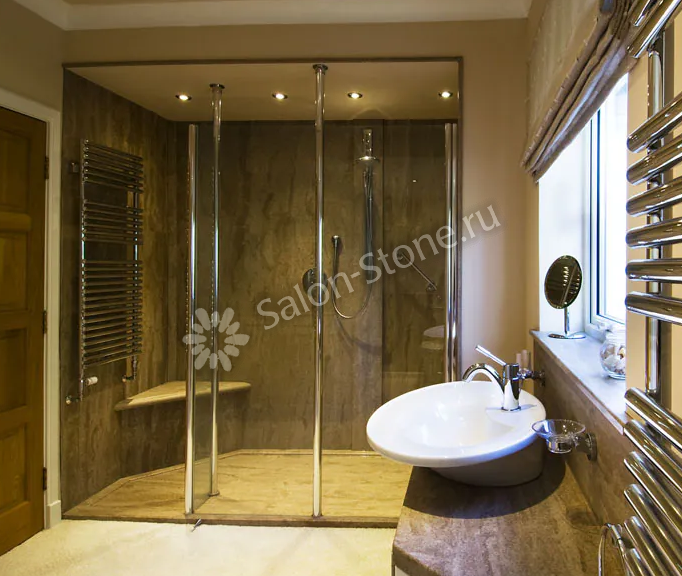 - Поверхности душевых поддонов из искусственного камня гладкие и непористые, что облегчает уход за ними. Они не впитывают воду и не оставляют пятен, что позволяет легко поддерживать чистоту и гигиеничность в ванной комнате.